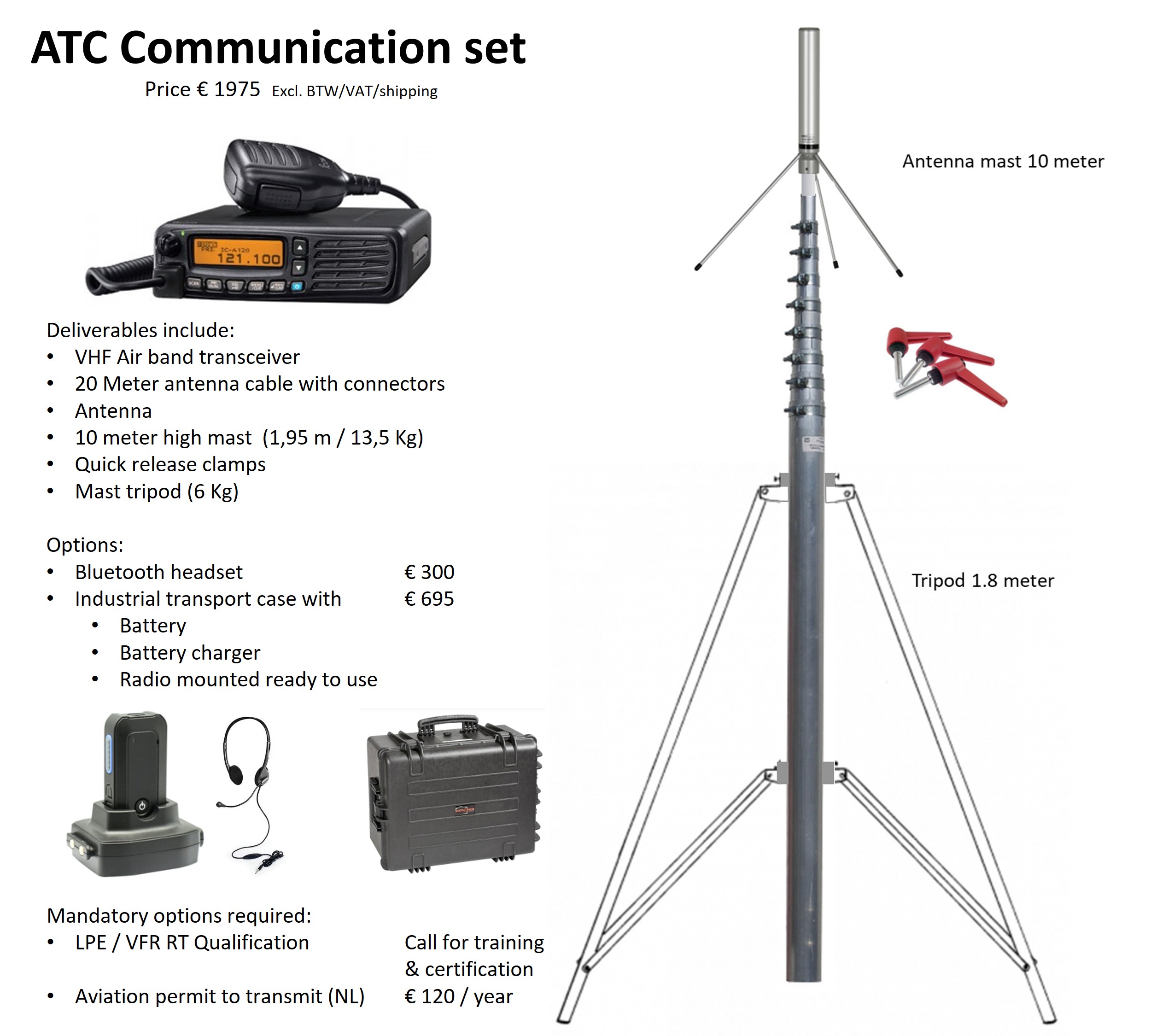 | Rental of the VHF Radio set as shown below: | € 195,00 | per half a day* | ||